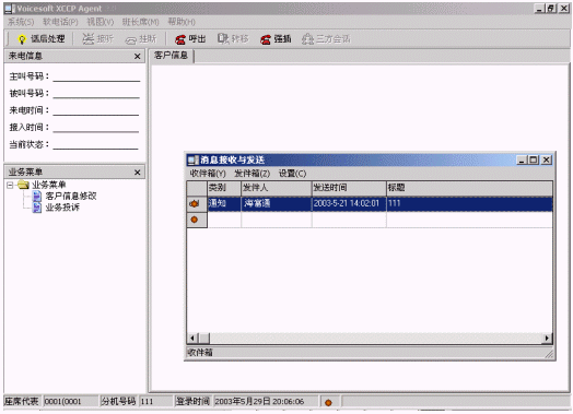 ·語(yǔ)音數(shù)據(jù)同步:當(dāng)呼叫在IVR和座席、座席和座席之間進(jìn)行互轉(zhuǎn)的時(shí)候,業(yè)務(wù)信息可以同時(shí)被傳送到目的設(shè)備上去,如用戶在IVR上的按鍵,或用戶帳號(hào)之類信息。這樣話務(wù)員在接到電話時(shí),座席軟件馬上就可以在數(shù)據(jù)庫(kù)取到相應(yīng)客戶信息,話務(wù)員無(wú)需重復(fù)詢問(wèn)對(duì)方信息,可以立即進(jìn)行服務(wù),大大提高工作效率,增加服務(wù)親和力