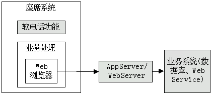 呼叫中心系統(tǒng)同業(yè)務(wù)有關(guān)系的主要是IVR服務(wù)器和Agent人工座席兩部分,他們都是通過(guò)AppServer應(yīng)用服務(wù)器同后臺(tái)業(yè)務(wù)系統(tǒng)進(jìn)行互聯(lián);IVR服務(wù)器和人工座席都是采用瀏覽器模式,他們的業(yè)務(wù)邏輯都是通過(guò)應(yīng)用服務(wù)器上的Web服務(wù)器進(jìn)行的,IVR的VoiceXML頁(yè)面和人工座席的HTML頁(yè)面都是通過(guò)AppServer上的Web服務(wù)器靜態(tài)或動(dòng)態(tài)產(chǎn)生的,他們同AppServer的通信都是通過(guò)HTTP協(xié)議進(jìn)行的。