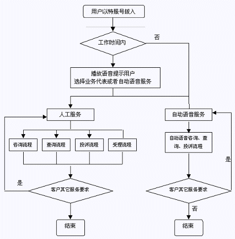 系統(tǒng)提供無人值守的24小時自動語音服務(wù),使用樹型結(jié)構(gòu),讓每一語音通道按照設(shè)定的流程進(jìn)行循序、分支或跳轉(zhuǎn),自動語音逐步引導(dǎo)來話者選擇電話按鍵,實(shí)現(xiàn)信箱留言、投訴舉報錄音、投訴處理結(jié)果查詢、自動咨詢、民意調(diào)查等。當(dāng)用戶撥通12345電話并選擇自動服務(wù)時,系統(tǒng)自動播放類似下面的引導(dǎo)語"選擇市長(縣長)信箱留言請按1,自動投訴舉報請按2,投訴查詢請按3,服務(wù)咨詢請按4,民意調(diào)查請按5"。系統(tǒng)還可根據(jù)咨詢者要求,以自動傳真、電子郵件等方式自動發(fā)送有關(guān)查詢結(jié)果資料。