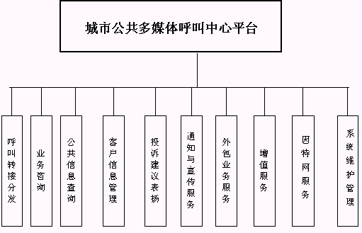 城市公共多媒體呼叫中心平臺的功能結(jié)構(gòu)如下圖所示: