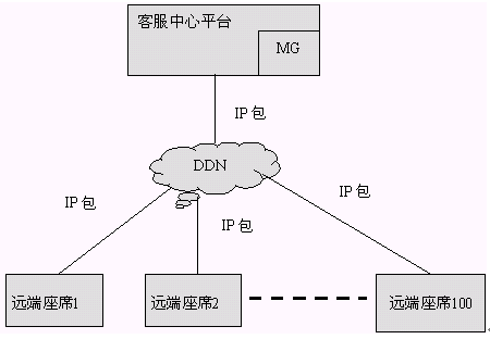 通過VOIP方式聯(lián)網(wǎng)時(shí),語音和傳真都是通過VOIP技術(shù)處理以IP包的形式在遠(yuǎn)端座席和中心之間進(jìn)行傳輸。在主呼叫中心和遠(yuǎn)端模塊,都需要設(shè)立媒體網(wǎng)關(guān),語音和傳真的聯(lián)網(wǎng)都是通過媒體網(wǎng)關(guān)處理后通過DDN相連的。