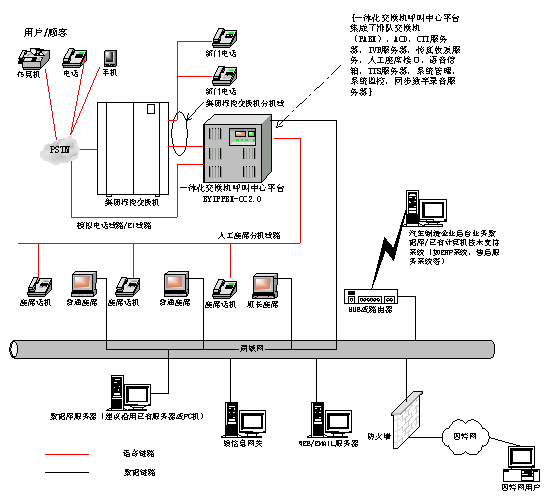 SERVER,從而構(gòu)成了軟硬件高度集成的一體化交換機(jī)呼叫中心平臺(tái)。
