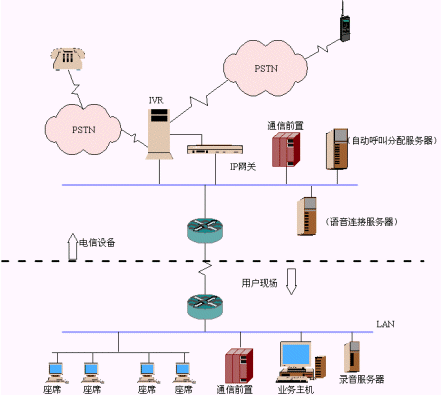 系統(tǒng)支持四種座席配置:PC+耳麥、PC+IP電話、PC+傳統(tǒng)電話、IP電話或傳統(tǒng)電話,其中座席采用PC+耳麥這種配置最容易擴(kuò)展,只要有一臺(tái)多媒體電腦和一付耳麥連接到可管理的IP網(wǎng)絡(luò)即可增加一個(gè)座席。