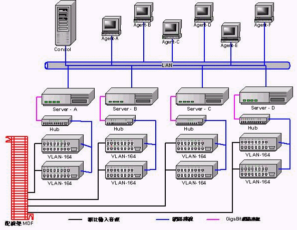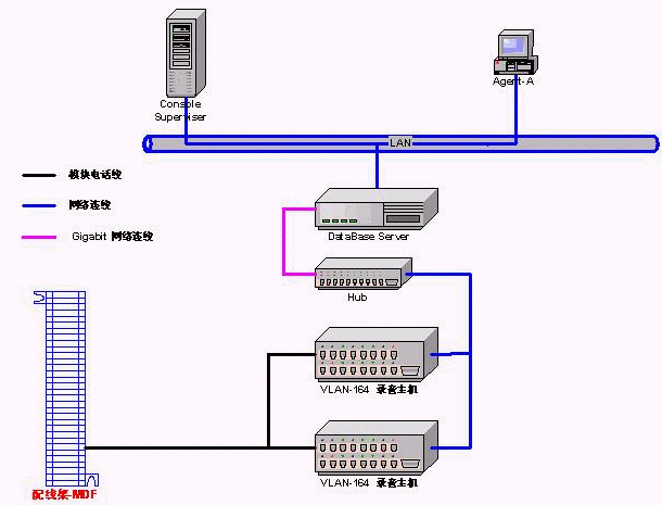VLAN Lan-based數(shù)字錄音系統(tǒng)采用全網(wǎng)絡(luò)架構(gòu),突破了原有使用錄音卡及工控機(jī)方式的局限性與高成本。使您的錄音系統(tǒng)不再需要工控機(jī),安裝升級(jí)擴(kuò)展完全不受工控機(jī)擴(kuò)展槽及硬件兼容性的限制。VLAN錄音系統(tǒng)推薦采用PC Server作為錄音存儲(chǔ)服務(wù)器,通過網(wǎng)絡(luò)協(xié)議與VLAN硬件相連。
