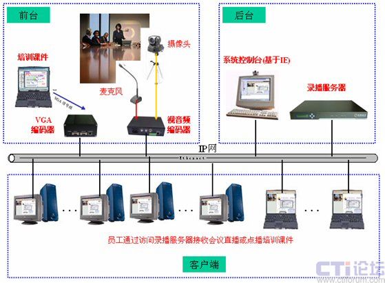 公司經(jīng)常會組織各種培訓(xùn),以往都是將員工召集到一起進(jìn)行集中面對面的培訓(xùn),如果參與培訓(xùn)人員太多,往往就要分場次的培訓(xùn),這樣培訓(xùn)的效率太低,因此希望構(gòu)建一套基于網(wǎng)絡(luò)的培訓(xùn)平臺,增強培訓(xùn)效率。同時,通過培訓(xùn)系統(tǒng)也可以對企業(yè)的日常會議進(jìn)行錄播,方便會議精神更好的傳達(dá)到每個員工的心中。