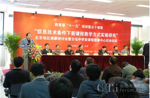 CTI論壇(ctiforum)11月11日消息(記者 潘婷):2009年11月5日, 教育部基礎教育課程教材發(fā)展中心在北京日壇中學隆重舉辦了“信息技術條件下新課程教學方式實驗研究”北京地區(qū)觀摩研討會暨日壇中學課程資源中心啟動儀式。到會的有教育部及北京市教委相關領導及北京市內(nèi)及外省市學校的的領導及老師600多人。