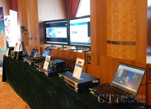 會場內(nèi)部搭建了產(chǎn)品展示區(qū),用4臺46寸顯示器,分別顯示分布式錄播系統(tǒng)(Beyonsys、powolive)平臺,Beyonsys導(dǎo)播平臺,接收導(dǎo)播后直播畫面;另用ipad接收直播,展示了桌面一體機(jī)、模塊化一體機(jī)、解碼器等相關(guān)產(chǎn)品。