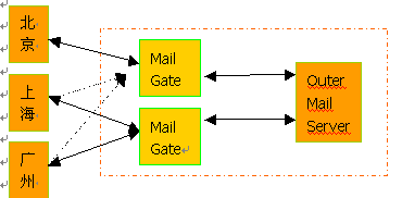 用于員工之間互發(fā)郵件;外部網(wǎng)有一套郵件系統(tǒng),掛在企業(yè)網(wǎng)站上,用于對(duì)外的溝通和交流。有些上一定規(guī)模的企業(yè)還有自己的專網(wǎng),與分公司和各地辦事處連接。這樣,就造成了一個(gè)企業(yè)多套郵件系統(tǒng)并存的現(xiàn)象。