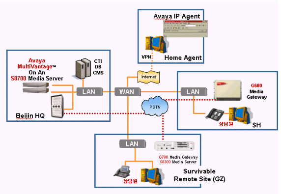 金主任的煩惱通過IP Telephony技術(shù)方式都得到了解決。首先將在用的交換機升級到IP Telephony Server,同時只需在另設(shè)的分支中心安裝受本部Media Server控制的Media Gateway,不用另建系統(tǒng)。 最后將本部和分支中心通過IP連接, 構(gòu)成一個虛擬呼叫中心(Virtual Contact Center)。這種做法與新建一個傳統(tǒng)的呼叫中心相比將節(jié)省一半的費用。 另外應(yīng)對非典型肺炎等傳染性疾病時,可將座席代表隨時轉(zhuǎn)移到分支中心,同時還可引入居家辦公的IP Agent 概念。