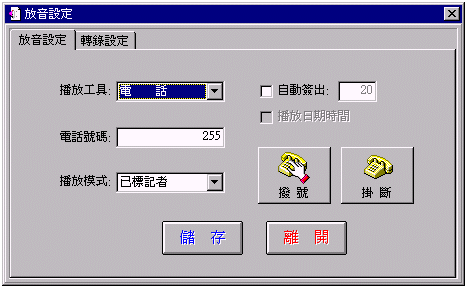 主功能畫面下,點(diǎn)選"錄音播放"按鈕,再點(diǎn)選任何一分機(jī)圖標(biāo),即進(jìn)入如下圖所示畫面: