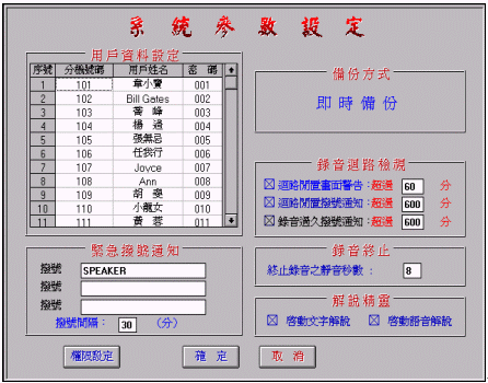 僅限擁有最高操作權(quán)限碼之維護(hù)人員才能使用。當(dāng)系統(tǒng)維護(hù)需要此功能,隨時(shí)可以人工手動的方式刪除硬盤內(nèi)的語音檔案。