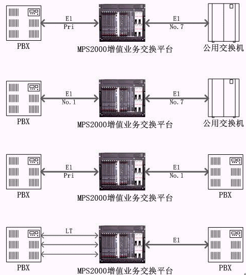 MPS2000-SG信令網(wǎng)關(guān)以MPS2000增值業(yè)務(wù)交換平臺(tái)為核心,配置支持不同信令的數(shù)字中繼板即可實(shí)現(xiàn)信令轉(zhuǎn)換的功能。