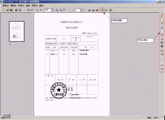 令王總最滿意的是,現(xiàn)在若遇到一些特定的文檔,如需手寫/簽名的文檔契約,就不必將傳真件列印出來,然后再簽名發(fā)送了,可直接用滑鼠(或手寫板)在電腦上就可完成簽名了,大大提高了傳真伺服器的便利性,及文件的保密性真正實現(xiàn)了電腦化及無紙化的綠色辦公環(huán)境。