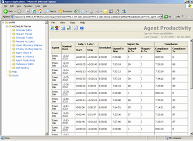 為了能夠最大限度利用呼叫中心的勞動力資源,必須確保呼叫中心的坐席員的勞動生產(chǎn)率始終保持最高水平。Aspect eWorkforce管理軟件的績效模塊可以幫助您了解坐席員的歷史和實時工作表現(xiàn),從而幫助他們改進和提高績效成績。