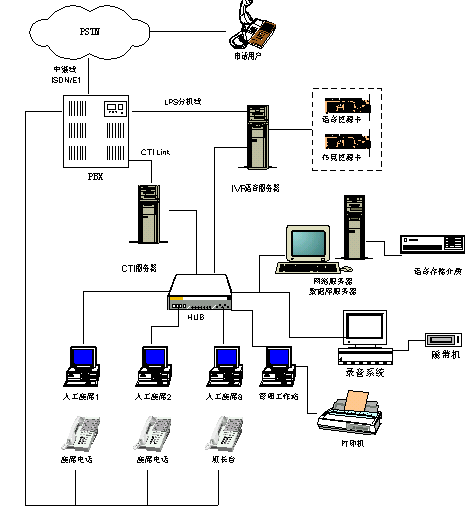 CTI服務(wù)器是一臺與交換機(jī)相聯(lián)的計(jì)算機(jī)(建議采用工控機(jī)),它通過接收來自交換機(jī)的事件/狀態(tài)消息和向交換機(jī)發(fā)送命令,實(shí)現(xiàn)計(jì)算機(jī)對電話、呼叫、分組、引導(dǎo)和中繼線全面控制,