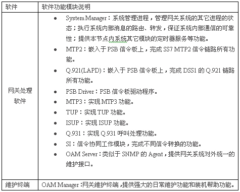 整個(gè)PSG信令轉(zhuǎn)換網(wǎng)關(guān)的軟件由系統(tǒng)支持軟件和網(wǎng)關(guān)處理軟件組成,具體見下表: