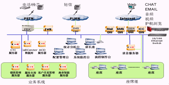 商路通呼叫中心解決方案采用先進的通訊和計算機集成技術(shù),該項目主要包括: