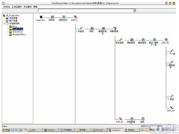 Hi-Link3.0中的IVRBuilder是IVR的流程編輯器,如圖1,它使用國(guó)際標(biāo)準(zhǔn)的XML語(yǔ)言描述IVR路程內(nèi)容。IVRParser就是IVR的執(zhí)行工具,它支持動(dòng)態(tài)加載技術(shù),編輯好的IVR流程放在服務(wù)器指定路徑后就會(huì)立即生效,下一個(gè)來(lái)電就會(huì)按照新流程來(lái)執(zhí)行。