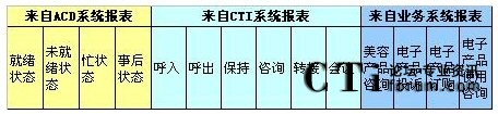 b)其它時間,報表在CTI中,各種統(tǒng)計指標都有,每天、每月、每季度、每年、按組、按技能,平均、總計、總合、最大、最小數(shù)據(jù)比較的表格、圖表,一應(yīng)俱全;