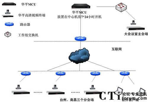 華平根據(jù)東森控股的實際需求,為用戶搭建了覆蓋上海、南昌、臺州辦公區(qū)、臺州營業(yè)部的高標(biāo)清混合組網(wǎng)和軟硬件混合組網(wǎng)方案。系統(tǒng)基于公共互聯(lián)網(wǎng)實現(xiàn)部署,并充分利用了華平多種網(wǎng)絡(luò)接入混合的優(yōu)勢,并采取MCU雙網(wǎng)卡接入解決方案,全面實現(xiàn)了電信、網(wǎng)通的網(wǎng)絡(luò)良好互通,系統(tǒng)極大的拓展了應(yīng)用的范圍,即使在差旅途中,只要能接入Internet網(wǎng)絡(luò),用戶就可以輕松地參與會議交流,如同身與各方坐一個會議室。系統(tǒng)還提供強大的數(shù)據(jù)輔助功能,參會者可以將各種需要交流的數(shù)據(jù)、圖形、報表、文字等信息同步顯示給所有相關(guān)人員,方便的進行工作交流,業(yè)務(wù)匯報和討論等,使異地溝通變的更加簡單和自如。