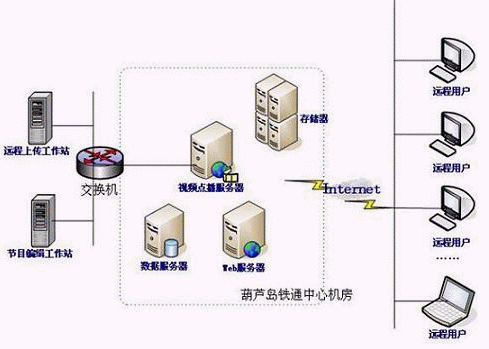 用于葫蘆島鐵通的視頻點(diǎn)播系統(tǒng),是典型的基于以太網(wǎng)的VOD大并發(fā)的應(yīng)用。軟硬件要求,在片源數(shù)據(jù)量大、并發(fā)用戶量大前提下,系統(tǒng)要求響應(yīng)速度快、運(yùn)行穩(wěn)定性、數(shù)據(jù)安全,同時(shí)考慮到未來一段時(shí)間內(nèi)訪問業(yè)務(wù)量會(huì)迅速增長(zhǎng)的必然需求,還要求系統(tǒng)平臺(tái)的在線可擴(kuò)展能力強(qiáng)、技術(shù)實(shí)現(xiàn)上具有一定的先進(jìn)性。