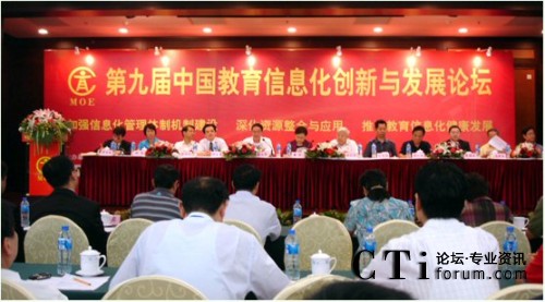 CTI論壇(ctiforum)07月16日消息: 2009年7月12日~7月13日,由教育部教育管理信息中心主辦的“第九屆中國教育信息化創(chuàng)新與發(fā)展論壇”在北京中苑賓館隆重召開。來自各級教育行政部門的相關(guān)領(lǐng)導(dǎo),各類學(xué)校的主管校長、信息化部門負責人參加了此次論壇,開幕式上教育部副部長魯昕同志發(fā)表了重要講話,為教育事業(yè)的改革與發(fā)展指明了方向。
