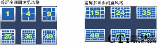 圖像性能升級后的新品NVR2860已全面支持1920*1080的高清顯示分辨率,為讓用戶真正在使用中能切實感受NVR的高清效果,產(chǎn)品規(guī)劃與研發(fā)人員作了很多調研與分析,他們首先考慮到用戶可能采取普屏和寬屏兩種顯示設備瀏覽圖像,其次,因NVR2860具備64路的接入容量,用戶肯定會有同時瀏覽多路圖像的需求,從而在畫面瀏覽風格上設計了4畫面、9畫面、49畫面等普屏類多畫面風格和15畫面、48畫面、70畫面等寬屏類多畫面風格,總共多達近20種多畫面風格,充分滿足了用戶在不同環(huán)境、不同應用下的使用需求。