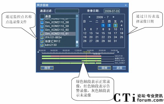 NVR2860在這一點上同樣秉承便捷性原則,并進一步提升了產(chǎn)品管理與使用的簡便,以NVR Station(NVR管理軟件)中錄像檢索與回放的操作界面設計為例:它采用了時間軸模式的設計,用戶可以通過界面上的日歷表選擇錄像日期,再通過監(jiān)控點名稱點選錄像文件便可觀看錄像了。而通過多路錄像同步回放功能,所有被點選的錄像文件在管理界面上還將被不同顏色的時間軸段作出正常錄像、告警錄像或未錄像的標注,非常直觀。