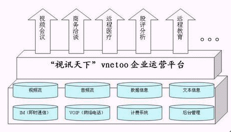 "視訊天下"VNETOO運營平臺就是應(yīng)用了新一代完美網(wǎng)絡(luò)視頻會議技術(shù)的典范,它具有優(yōu)質(zhì)的音視頻效果和強大的數(shù)據(jù)功能,是集"視頻+語音+數(shù)據(jù)+IM(即時通信)+VOIP(網(wǎng)絡(luò)電話)+計費系統(tǒng)+后臺管理"的基于IP網(wǎng)絡(luò)世界一流視訊服務(wù)提供平臺,它革命性地開創(chuàng)了視訊運營領(lǐng)域的全新模式。