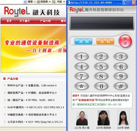 融天科技視頻呼叫中心都采用了非常先進的Web-Call和視頻通信技術(shù),將軟電話控件嵌入到企業(yè)網(wǎng)站上,而對于企業(yè)來說一切都變得非常簡單,無論何時何地,客戶在訪問企業(yè)網(wǎng)站時,可以通過傻瓜式的WEB界面點擊在線視頻座席,只要客戶PC裝有麥克風和攝像頭即可以網(wǎng)頁方式進行面對面的進行視頻和語音交流,同時也能向用戶播放相關(guān)的產(chǎn)品資訊,讓您抓住即將流失準客戶,直接為您的企業(yè)創(chuàng)造價值。