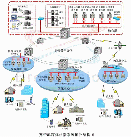 - 寬帶流媒體運營管理支撐系統(tǒng),包括點播內(nèi)容的采集、管理、內(nèi)容分發(fā)、負載均衡、計費等功能模塊;