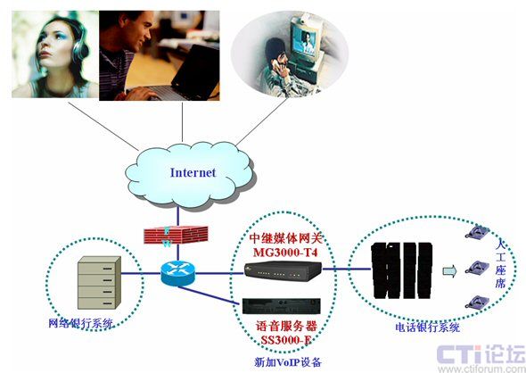 通過上述三環(huán)節(jié),Internet上的電話呼叫即可送入電話銀行的人工座席處,Internet上的客戶也就可以通過計算機上的耳麥和電話銀行座席人員通話。