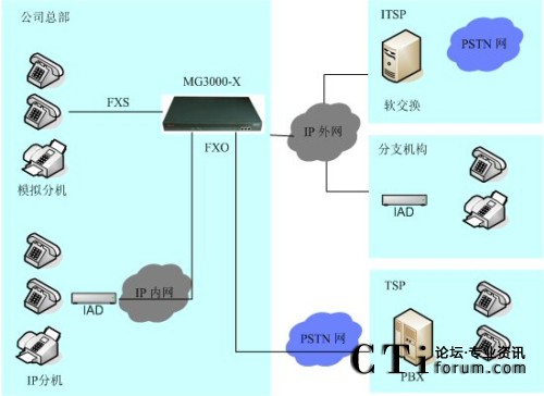 MG3000-X100替代傳統(tǒng)PBX交換機(jī)應(yīng)用方案 2009-09-23