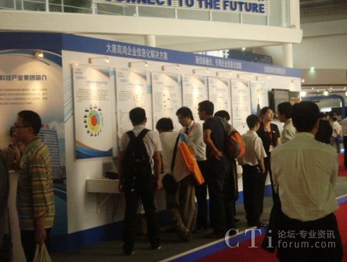 通過(guò)”融合通訊系統(tǒng)解決方案”、“中小企業(yè)信息化解決方案”等展板與演示,可以看出大唐高鴻的企業(yè)信息化解決方案可以并且正在全面應(yīng)用于政府、軍隊(duì)煤礦、電力、公安、鐵路、公路、水力等企業(yè)行業(yè)。