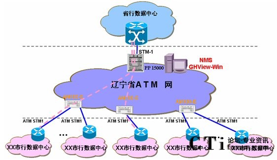 采用大唐高鴻獨(dú)立研發(fā)的電信級(jí)寬帶多業(yè)務(wù)接入復(fù)用交換機(jī)AM100-E設(shè)備,充分利用其體積小、ATM端口密度高、交換功能強(qiáng)大的特點(diǎn),將各個(gè)市數(shù)據(jù)中心通過(guò)ATM方式接入到所屬區(qū)域的通信節(jié)點(diǎn),由AM100-E設(shè)備實(shí)現(xiàn)ATM接入?yún)R聚,并通過(guò)ATM端口匯聚交換到中心點(diǎn)。