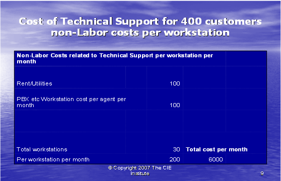 最后,我們可以如同下面圖表10所示,把所有的信息放在一起。每個(gè)客戶的技術(shù)支持的實(shí)際成本包括間接人工成本和工作場(chǎng)地成本,這是服務(wù)一個(gè)客戶所花費(fèi)成本的正確的反映。