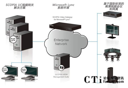 通過SCOPIA UC視頻網(wǎng)關(guān),Microsoft的Lync和Office Communicator用戶可以輕松地與任意基于國(guó)際標(biāo)準(zhǔn)建立的傳統(tǒng)視頻會(huì)議系統(tǒng)無縫連接,無論該系統(tǒng)是會(huì)議室型高清設(shè)備、桌面型終端,抑或網(wǎng)真系統(tǒng)等等。采用該解決方案,用戶可同時(shí)享用傳統(tǒng)視頻會(huì)議和Lync、Office Communicator桌面辦公通訊系統(tǒng)帶來的便捷和高效。