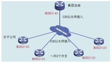 集團(tuán)總部和分子公司部署H3C公司的VG80-20作為語音網(wǎng)關(guān),VG 80-20提供2個(gè)E1語音接口用于接連接程控電話交換機(jī)PBX的E1中繼線,通過以太網(wǎng)口連接到IP網(wǎng)中。