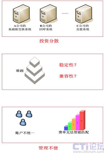 很多運(yùn)營者常常都是最初搭建一套基礎(chǔ)的VOIP運(yùn)營平臺,之后出現(xiàn)回呼業(yè)務(wù),購買一套回呼系統(tǒng)與原系統(tǒng)對掛接,然后發(fā)現(xiàn)直撥業(yè)務(wù)在國際話務(wù)中優(yōu)勢明顯,于是又搭建一套直撥系統(tǒng)。