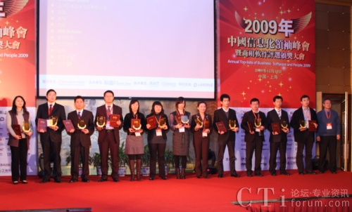 CTI論壇(ctiforum)12月15日消息(記者 張塵):12月10日,“2009中國信息化領(lǐng)袖峰會(huì)暨商用軟件評(píng)選頒獎(jiǎng)大會(huì)”在上海東錦江索菲特大酒店隆重召開。此次會(huì)議以軟件行業(yè)協(xié)會(huì)為指導(dǎo)單位,由暢享網(wǎng)主辦,AMT集團(tuán)及德賽網(wǎng)協(xié)辦,并得到上海浦東軟件園的特別支持,通過歷時(shí)三個(gè)多月的調(diào)查研究和評(píng)選,結(jié)果于當(dāng)日揭曉。