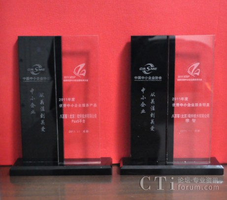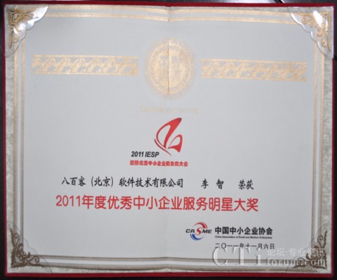 作為國內(nèi)首家SaaS廠商,八百客積極推動(dòng)云計(jì)算在中小企業(yè)中的宣傳與運(yùn)用。2006年,八百客在國內(nèi)率先推出管理自動(dòng)化開發(fā)平臺(tái)800APP, 它擴(kuò)展了按需服務(wù),并實(shí)現(xiàn)了客戶可根據(jù)需要自定制應(yīng)用程序,成為了改變應(yīng)用程序開發(fā)的一個(gè)新途徑。為表彰八百客在中小企業(yè)信息化中做出的杰出貢獻(xiàn),本次大會(huì)特別為八百客頒發(fā)了“2011年度優(yōu)秀中小企業(yè)服務(wù)產(chǎn)品大獎(jiǎng)”,此外還授予八百客總經(jīng)理李智 “2011年度優(yōu)秀中小企業(yè)服務(wù)明星大獎(jiǎng)”。