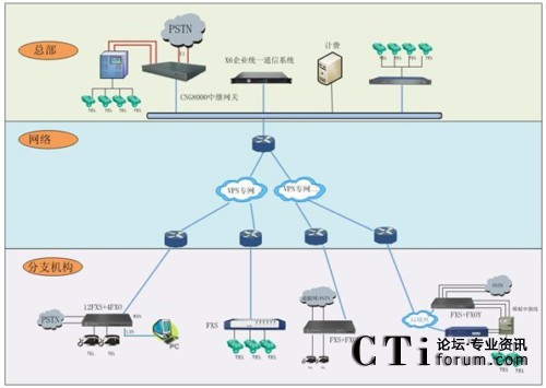 位于不同VPN網(wǎng)絡(luò)的分支機構(gòu)統(tǒng)一接入X6系統(tǒng)進(jìn)行交換轉(zhuǎn)發(fā)。