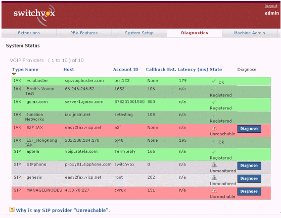 圖5中綠色表示正常,紅色表示出現(xiàn)問題,白色表示從沒有接通過。如果你按診斷(Diagnose),系統(tǒng)便會通過自動測試,告訴你問題出自哪一部分。如果需要對每一個的詳細解析,可以按底部Why這個標(biāo)題,找尋答案。類似的終端、話機等配置、硬件診斷等,也有非常明了的界面與解決問題的辦法。