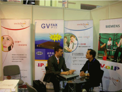 美國(guó)訊時(shí)捷科技公司作為IP-PBX專業(yè)提供商于2006年5月23-26日參加了最具權(quán)威的2006中國(guó)國(guó)際信息通信展覽會(huì),在上海光大會(huì)展中心的B019展位展示了Switchvox IPX與戰(zhàn)略合作伙伴Siemens配套IP終端話機(jī)。此次展會(huì),我們還推出了企業(yè)級(jí)新一代的IP傳真服務(wù)器GV-FAX,此次大會(huì)吸引了眾多全國(guó)的渠道代表、廠商、集成商和媒體參加,對(duì)產(chǎn)品感興趣的來賓絡(luò)繹不絕。