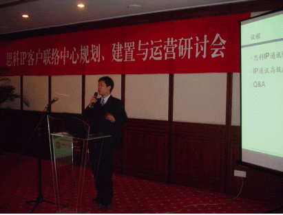 做第二場(chǎng)主題演講的是思科中國(guó)的高級(jí)經(jīng)理陳俊僑先生,他演講的題目是《釋放網(wǎng)絡(luò)潛能 用網(wǎng)絡(luò)創(chuàng)造價(jià)值》。陳俊僑先生從IP客戶聯(lián)絡(luò)中心的發(fā)展、IP通信的現(xiàn)狀、Cisco在IP客戶聯(lián)絡(luò)中心方面的種種優(yōu)勢(shì)等幾個(gè)方面全面介紹了Cisco IPCC的情況,并指出思科IPCC平臺(tái)是目前業(yè)界最先進(jìn)、能最大程度上滿足企業(yè)業(yè)務(wù)需求的多媒體客戶聯(lián)絡(luò)中心平臺(tái)。最后,陳俊僑先生還和與會(huì)人員分享了Cisco IPCC的幾個(gè)成功案例。在大家的一片贊嘆聲中,陳俊僑先生結(jié)束了他的演講。