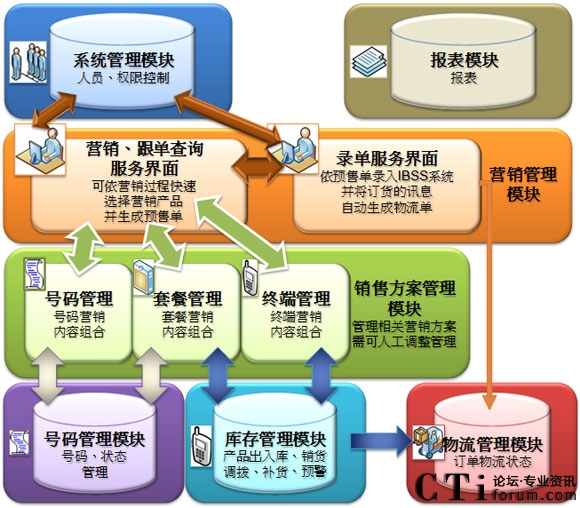運(yùn)營(yíng)管理系統(tǒng)的模塊主要由七個(gè)組成:系統(tǒng)管理模塊、營(yíng)銷(xiāo)管理模塊、銷(xiāo)售方案管理模塊、號(hào)碼管理模塊、庫(kù)存管理模塊、物流管理模塊和報(bào)表模塊。
