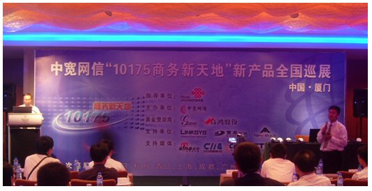 2007年6月27日,中寬網(wǎng)信”101756商務(wù)新天地”新產(chǎn)品全國(guó)巡展廈門站在廈門喜來(lái)登酒店勝利召開(kāi)。會(huì)議的主旨是向中小企業(yè)及呼叫中心用戶推出個(gè)性化的通信增值服務(wù)方案,提高企業(yè)競(jìng)爭(zhēng)力;同時(shí)為投資者提供投資小回報(bào)快的投資項(xiàng)目。此次會(huì)議得到了中國(guó)聯(lián)通的大力支持,廈門聯(lián)通數(shù)據(jù)部副總監(jiān)林長(zhǎng)春先生表示中國(guó)聯(lián)通十分看好中國(guó)電信融合市場(chǎng)的巨大產(chǎn)業(yè)機(jī)會(huì),有信心與中寬網(wǎng)信真誠(chéng)合作,利用雙方各自平臺(tái)優(yōu)勢(shì),深度合作,資源互補(bǔ),共同參與激烈的電信市場(chǎng)競(jìng)爭(zhēng)。