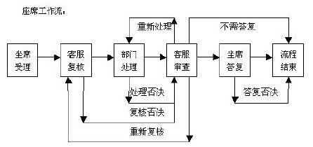 采用B/S模式設(shè)計(jì)的座席人工業(yè)務(wù)系統(tǒng)上可以集成網(wǎng)上辦公系統(tǒng),在WEB Server上建立辦公工作流,集成的辦公工作流方式:受理-> 復(fù)核-> 處理-> 審查-> 答復(fù)-> 結(jié)束。在集成工作流環(huán)境中,座席、班長(zhǎng)座席可以受理客戶來(lái)電,生成客戶來(lái)電受理單等待下一步處理。