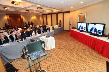 為了更好地展示新一代視頻系統(tǒng),LifeSize公司現(xiàn)場接通了美國總部的視頻會議畫面,畫面逼真流暢。LifeSize公司創(chuàng)始人、首席執(zhí)行官Craig