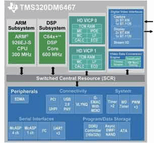 圖3:基于達芬奇技術的TMS320DM6467數(shù)字媒體處理器方框圖